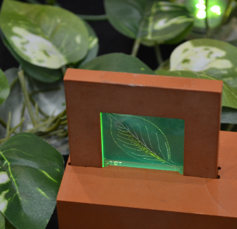 また加飾レス成形では照明を当てることで見え方が変化するサンプル品を展示いたしました。