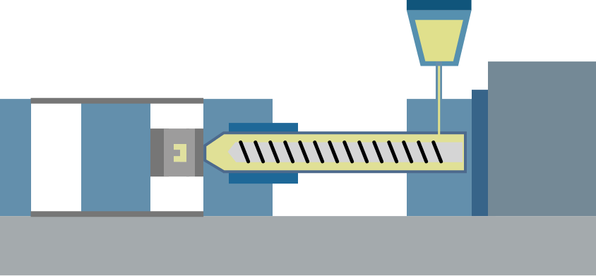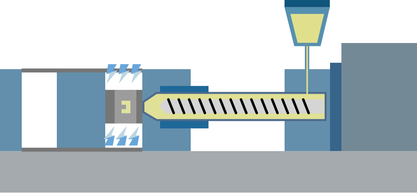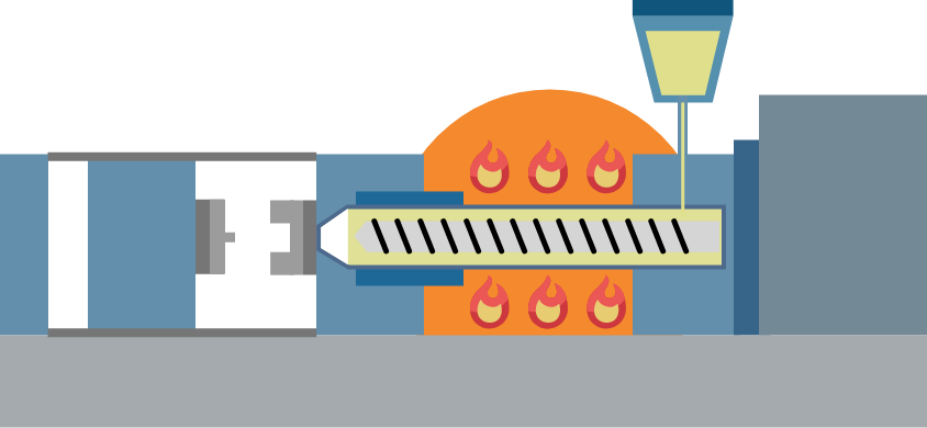 ヒーターによってスクリュー内で原料を加熱し、溶融状態にします。